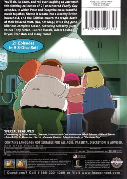 Sick, twisted, politically incorrect and Freakin' Sweet animated series featuring the adventures of the dysfunctional Griffin family. Bumbling Peter and long-suffering Lois have three kids. Stewie (a brilliant but sadistic baby bent on killing his mother and taking over the world), Meg (the oldest, and is the most unpopular girl in town) and Chris (the middle kid, he's not very bright but has a passion for movies). The final member of the family is Brian - a talking dog and much more than a pet, he keeps Stewie in check whilst sipping Martinis and sorting through his own life issues.