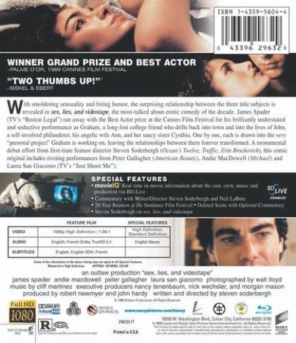 Ann, a frustrated wife, enters into counseling due to a troubled marriage. Unbeknownst to her, her husband John has begun an affair with her sister. When John’s best friend Graham arrives, his penchant for interviewing women about their sex lives forever changes John and Ann’s rocky marriage.