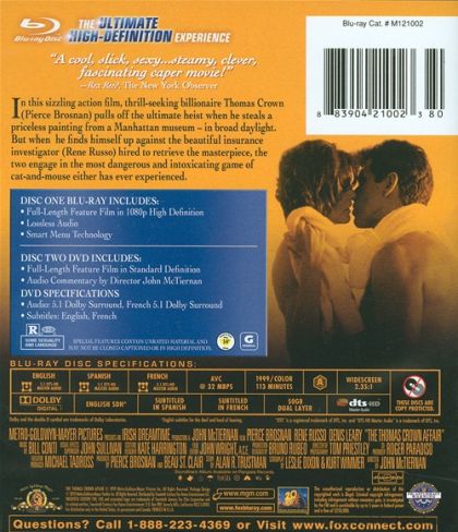 Bored billionaire executive Thomas Crown entertains himself by stealing a Monet from a reputed museum with an elaborate diversion. When Catherine Banning, the insurance company's investigator, takes an interest in Crown, he may have met his match, and a complicated back-and-forth game with seductive undertones begins between them.