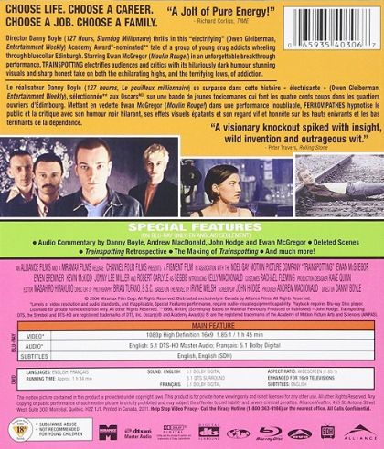 Heroin addict Mark Renton stumbles through bad ideas and sobriety attempts with his unreliable friends --Sick Boy, Begbie, Spud and Tommy. He also has an underage girlfriend, Diane, along for the ride. After cleaning up and moving from Edinburgh to London, Mark finds he can't escape the life he left behind as Begbie and Sick Boy come knocking.