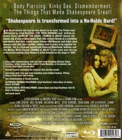 All the body-piercing, kinky sex, and car crashes that Shakespeare wanted but never had! Join Tromeo and Juliet as they travel through Manhattan's underground in search of climactic love, violence and the American Way.