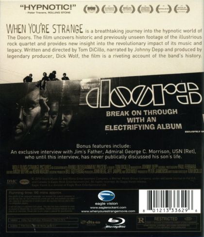 The creative chemistry of four brilliant artists —drummer John Densmore, guitarist Robby Kreiger, keyboardist Ray Manzarek and singer Jim Morrison— made The Doors one of America's most iconic and influential rock bands. Using footage shot between their formation in 1965 and Morrison's death in 1971, it follows the band from the corridors of UCLA's film school, where Manzarek and Morrison met, to the stages of sold-out arenas.