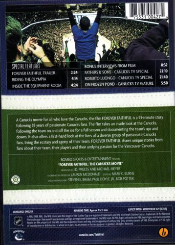 Forever Faithful captures the experience that is Vancouver Canucks hockey. The focus is less on the game than the effect of the game. Who are these people who break the mold and lay bare their very soul to support the local hockey team? Who lives in this bastion of tranquility and yet can be found screaming into the night with the unbridled emotion of a prisoner freed? The hockey fans of Vancouver are as diverse as the city's population writ large. There are no stereotypical Canucks fans. They are you, they are me. They are Forever Faithful.