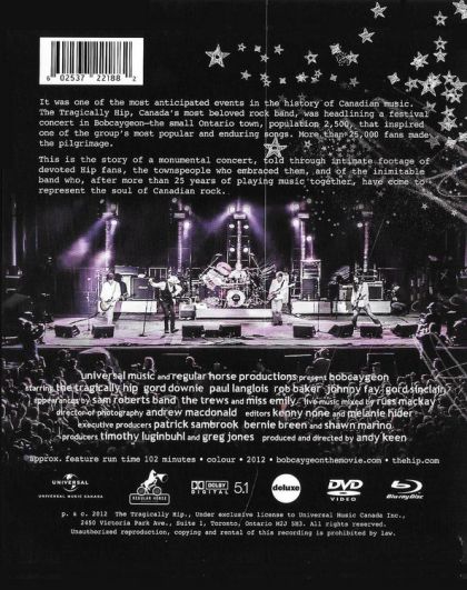 It was one of the most anticipated events in the history of Canadian music. The Tragically Hip, Canada's most beloved rock band, was headlining a festival concert in Bobcaygeon - the small Ontario town, population 2,500, that inspired one of the group's most popular and enduring songs. 25,000 fans from across North America and Europe would make the pilgrimage. This is the story of a monumental concert, told through intimate footage of devoted Hip fans, the townspeople who embraced them, and of the inimitable band who, after more than 25 years of playing music together, have come to represent the soul of Canadian rock.