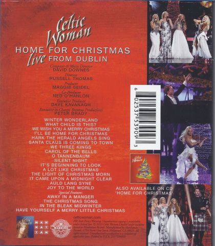 HOME FOR CHRISTMAS- LIVE FROM DUBLIN is a festive, musical enchantment to be enjoyed by the entire family. The concert features timeless holiday favorites ( Silent Night , I ll Be Home for Christmas , It Came Upon a Midnight Clear , Joy To The World ) with the group s signature Celtic Woman flair under the distinct musical direction of Emmy-nominated Music Director, David Downes. Complimented by Ireland's finest musicians comprised of a 36 piece orchestra and 40-member Philharmonic Choir, this large-scale one-hour production promises a festive and moving celebration of music to be cherished by generations. The DVD and Blu-Ray also feature 15 minutes of bonus material of intimate, acoustic performances to Away In A Manger , The Christmas Song , In The Bleak Midwinter and Have Yourself a Merry Little Christmas.