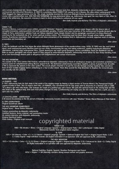 | Edition | Fando y Lis / El Topo / The Holy Mountain |