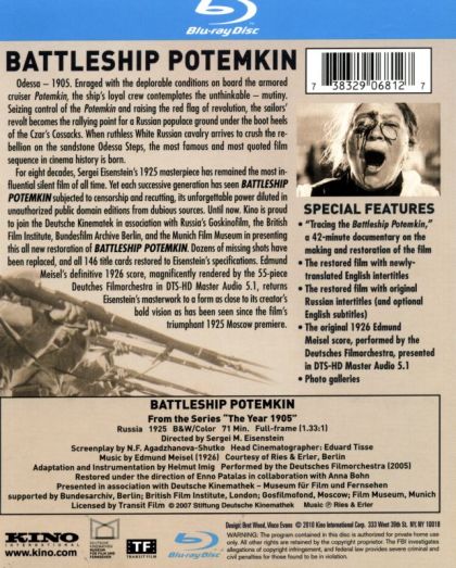A dramatized account of a great Russian naval mutiny and a resultant public demonstration, showing support, which brought on a police massacre. The film had an incredible impact on the development of cinema and is a masterful example of montage editing.