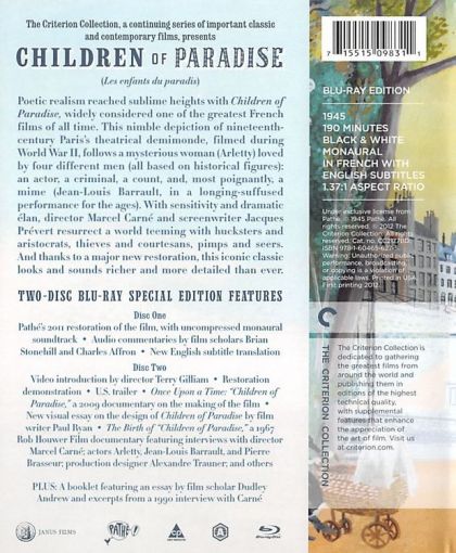 In a chaotic 19th-century Paris teeming with aristocrats, thieves, psychics, and courtesans, theater mime Baptiste is in love with the mysterious actress Garance. But Garance, in turn, is loved by three other men: pretentious actor Frederick, conniving thief Lacenaire, and Count Edouard of Montray.