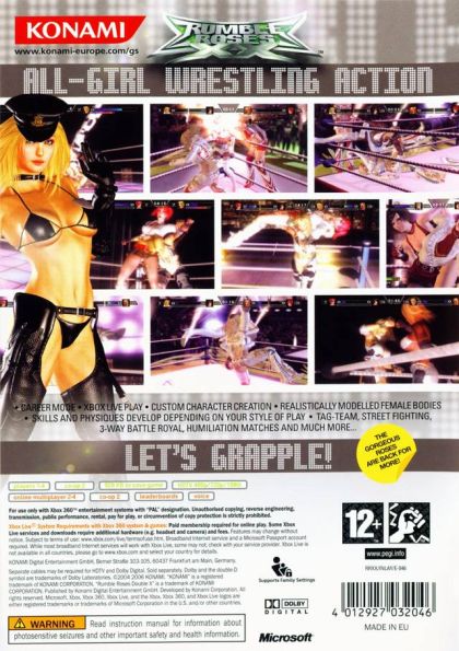 Featuring over 20 female characters, Rumble Roses XX is a graphically stunning wrestling title featuring a wide range of throws, counter-moves and pin-downs. Each character has a distinct personality, from Cow-Girl Dixie through to school girl Reiko and wicked nurse Anesthesia. In addition to the staple throws, slaps and pins of the wrestling genre, each girl has specific attacks linked to their overt personalities and can also string together a number of moves to create formidable combinations. In keeping with the glitzy showcase nature of the game, the girls also have taunt moves to rile their opponents and to get the crowd going.