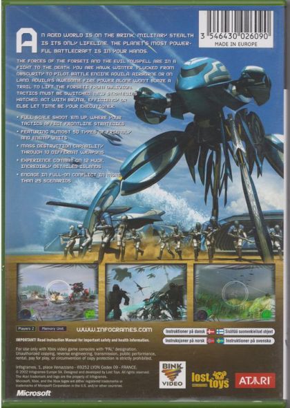 Immersed in a series of increasingly frantic missions, you - playing the part of Hawk, the pilot of the prototype Battle Engine, codenamed Aquila - take part in a saga that sweeps across a ravaged globe. One man can make a difference… A sudden climatic change triggers a global crisis and a dramatic betrayal propels an adolescent misfit from obscurity into the middle of a conflict that pits one ancient enemy against another in an epic battle for survival. The Battle Engine Aquila world consists of a series of islands that are the result of devastating climatic change brought on by centuries of atmospheric pollution. Rising water levels and floods have left only the highest ground above water. With land at a premium, tensions have built between the surviving nations, as each one tries to stake a claim to the precious dry land, increasing the landmass for their swelling populations. Each encounter takes place upon a vast battlefield, with war raging between two feuding sides - the Forseti and the Muspell. This is a major war, with thousands of units engaged on each side, ranging from infantry to tanks, planes, battleships and artillery. You alone must pilot the fearsome Battle Engine Aquila, a behemoth war machine and the single most destructive unit on the battlefield, capable of patrolling from the ground or attacking from the air. One-on-one you can destroy most individual enemy units, but you cant take them all out single-handed - there are simply too many of them!
