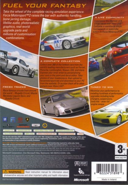 With authentic simulation physics, bone-jarring damage, photo-realistic graphics, and licensed tuning and customization options, the franchise improves on the unprecedented features gamers enjoyed in its debut installment. Loaded with more than 300 of the world's hottest cars for you to collect, personalize and tune, "Forza Motorsport 2" gives you a complete racing experience.