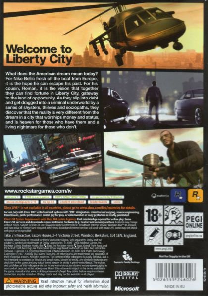 What does the American Dream mean today? For Niko Bellic, fresh off the boat from Europe, it is the hope he can escape his past. For his cousin, Roman, it is the vision that together they can find fortune in Liberty City, gateway to the land of opportunity.