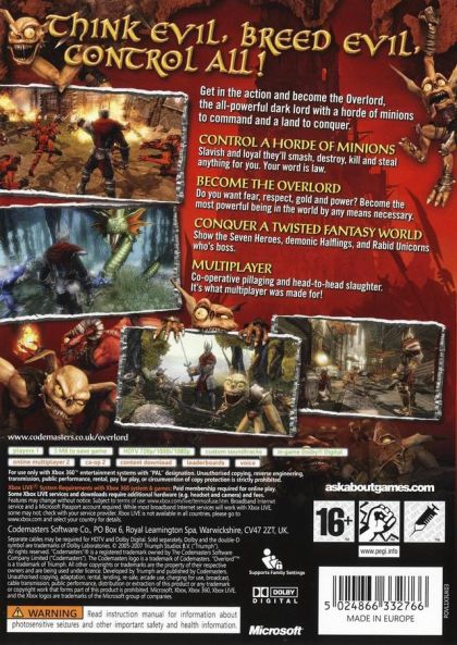 Controlling a mysterious figure that has inherited the legacy of the evil, long-dead Overlord, the player emerges, near death, from the ruins of the old Overlord's Dark Tower. Only the player's actions will determine if they will rise to become the new all-powerful Overlord; it's all down to how much of a bad ass they want to be in order to succeed… evil or really evil! Played out with plenty of black humour and dark irony, the game will immerse players in twisted parodies of classic fantasy scenarios and characters.