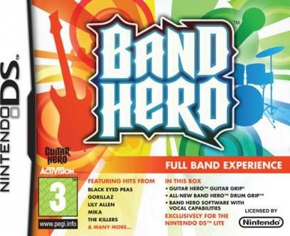 Music fans can now take their whole band and play their favorite music on the road anytime, anywhere with Band Hero for the Nintendo DS Lite. Band Hero takes the fun of social gaming beyond the living room and allows families and friends to play together as a band with the DS Lites' built in microphone, the brand new innovative Drum Grip that gives players the ability to lay down beats on their DS Lite, and the signature Guitar Hero Guitar Grip guitar gameplay. This cooperative, family-friendly addition to the Guitar Hero series boasts the biggest set list for a Nintendo DS music game to date and is comprised of some of the hottest tracks from music's most popular artists including: Blink-182, Avril Lavigne, The Killers, KT Tunstall and Fall Out Boy.