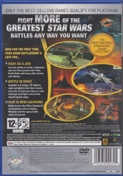 Star Wars Battlefront II takes the best-selling Star Wars video game of all time one Imperial-walker step forward with all-new space combat, playable Jedi, and never-before-seen environments straight out of the Star Wars: Episode III Revenge of the Sith film. Fans of the original Star Wars Battlefront will also enjoy an all-new single-player experience that takes players through an epic, story-based saga where every action the player takes impacts the battlefront and, ultimately, the fate of the Star Wars galaxy. Critically acclaimed Pandemic Studios is once again developing the game for LucasArts.