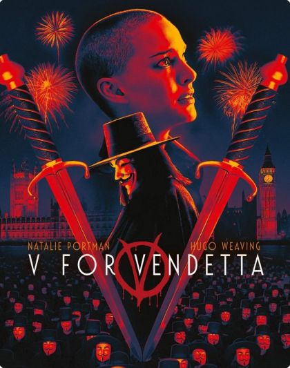 In a world in which Great Britain has become a fascist state, a masked vigilante known only as “V” conducts guerrilla warfare against the oppressive British government. When V rescues a young woman from the secret police, he finds in her an ally with whom he can continue his fight to free the people of Britain.