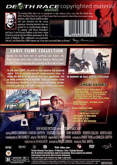 In a boorish future, the government sponsors a popular, but bloody, cross-country race in which points are scored by mowing down pedestrians. Five teams, each comprised of a male and female, compete using cars equipped with deadly weapons. Frankenstein, the mysterious returning champion, has become America's hero, but this time he has a passenger from the underground resistance.