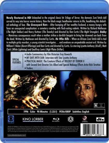 Three tales of terror: in "The Graveyard Rats" lovers murder the woman's older husband and encounter horror when they attempt to rob his grave; "Bobby" is the story of a woman who summons her son back from the dead; and in "He Who Kills" an African doll goes on a murderous rampage.