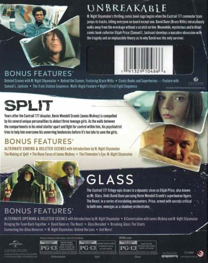 In a series of escalating encounters, former security guard David Dunn uses his supernatural abilities to track Kevin Wendell Crumb, a disturbed man who has twenty-four personalities. Meanwhile, the shadowy presence of Elijah Price emerges as an orchestrator who holds secrets critical to both men.