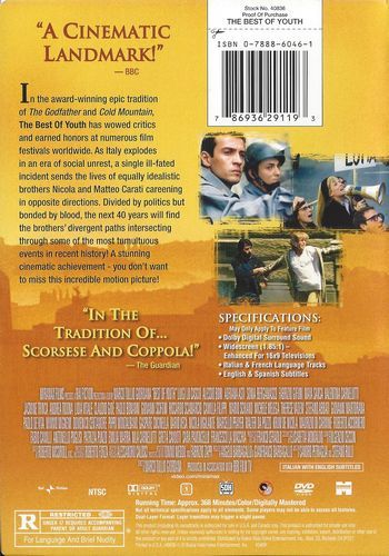 Spanning four decades, from the chaotic 1960s to the present, director Marco Tullio Giordana's passionate epic 'La Meglio Gioventu' follows two Italian brothers through some of the most tumultuous events of recent Italian history.