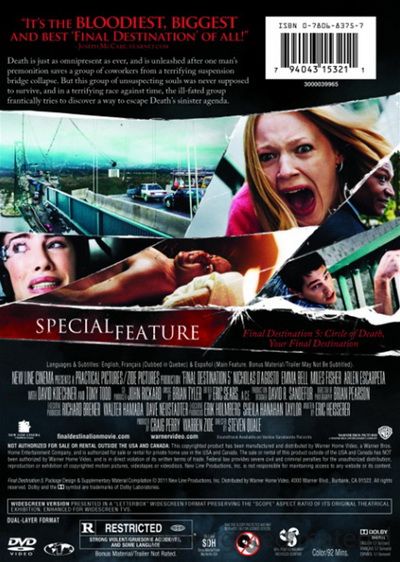 Death is just as omnipresent as ever, and is unleashed after one man’s premonition saves a group of coworkers from a terrifying suspension bridge collapse. But this group of unsuspecting souls was never supposed to survive, and, in a terrifying race against time, the ill-fated group frantically tries to discover a way to escape Death’s sinister agenda.