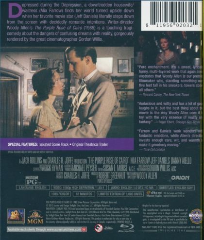 Cecilia is a waitress in New Jersey, living a dreary life during the Great Depression. Her only escape from her mundane reality is the movie theatre. After losing her job, Cecilia goes to see 'The Purple Rose of Cairo' in hopes of raising her spirits, where she watches dashing archaeologist Tom Baxter time and again.