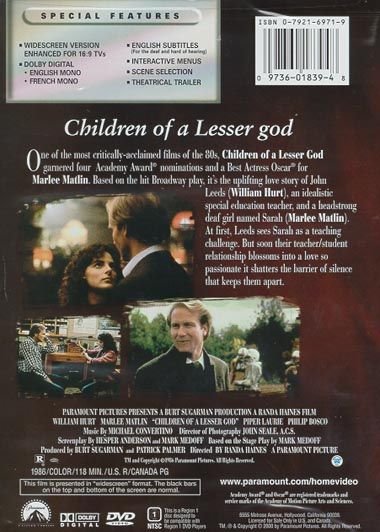 Starting his new job as an instructor at a New England school for the deaf, James Leeds meets Sarah Norman, a young deaf woman who works at the school as a member of the custodial staff. In spite of Sarah's withdrawn emotional state, a romance slowly develops between the pair.