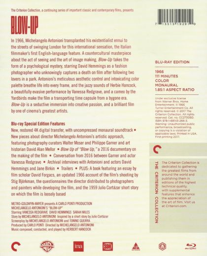 A successful mod photographer in London whose world is bounded by fashion, pop music, marijuana, and easy sex, feels his life is boring and despairing. But in the course of a single day he unknowingly captures a death on film.