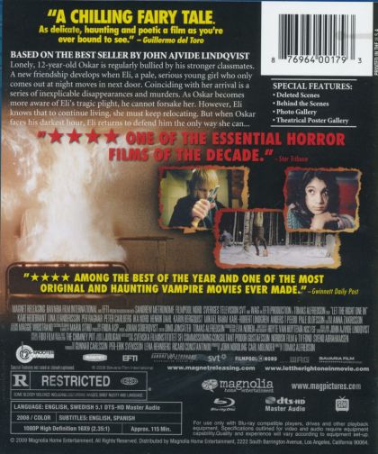 When Oskar, a sensitive, bullied 12-year-old boy, meets his new neighbor, the mysterious and moody Eli, they strike up a friendship. Initially reserved with each other, Oskar and Eli slowly form a close bond, but it soon becomes apparent that she is no ordinary young girl.