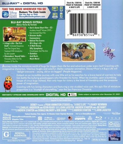 On behalf of "oppressed bugs everywhere," an inventive ant named Flik hires a troupe of warrior bugs to defend his bustling colony from a horde of freeloading grasshoppers led by the evil-minded Hopper.