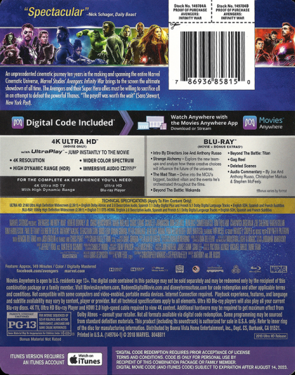 | Audio Tracks | DTS-HD Master Audio 7.1 [English] Descriptive Audio 2.0 [English] Dolby Atmos [English] Dolby Digital 5.1 [French] Dolby Digital 5.1 [Spanish] Dolby Digital Plus 7.1 [Spanish] |