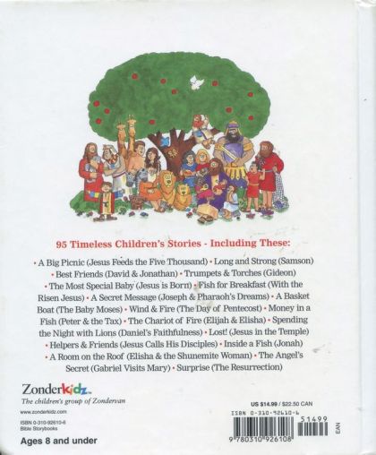 95 Timeless Children's Stories -- Including These: - A Big Picnic (Jesus Feeds the Five Thousand) - Long and Strong (Samson) - Best Friends (David and Jonathan) - Trumpets and Torches (Gideon) - The Most Special Baby (Jesus is Born) - Fish for Breakfast (With the Risen Jesus) - A Secret Message (Joseph and Pharaoh's Dreams) - A Basket Boat (The Baby Moses) - Wind and Fire (The Day of Pentecost) - Money in a Fish (Peter and the Taxes) - The Chariot of Fire (Elijah and Elisha) - Spending the Night with Lions (Daniel's Faithfulness) - Lost! (Jesus in the Temple) - Helpers and Friends (Jesus Calls His Disciples) - Inside a Fish (Jonah) - A Room on the Roof (Elisha and the Shunemite Woman) - The Angel's Secret (Gabriel Visits Mary) - Surprise (The Resurrection)