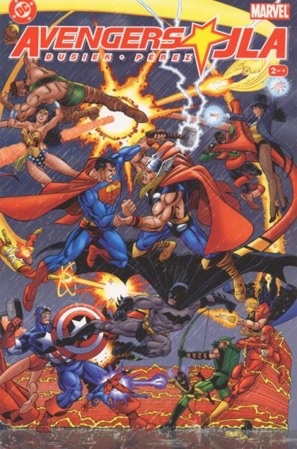 WRITTEN BY KURT BUSIEK; ART AND COVER BY GEORGE PÉREZ In stores October 22. Round 2 of the comic-book event of the year is here! The titanic team-up the world has waited for continues as the threats that brought the heroes together in the first issue tear the teams apart! Guest- starring every character to ever belong to the Avengers and the JLA! For more information, see the feature article. Co-published by DC and Marvel. Look for JLA/AVENGERS #3 solicited next month by Marvel. Prestige Format. FC, 48 PG. (2 OF 4) $5.95 Cover price $5.95.