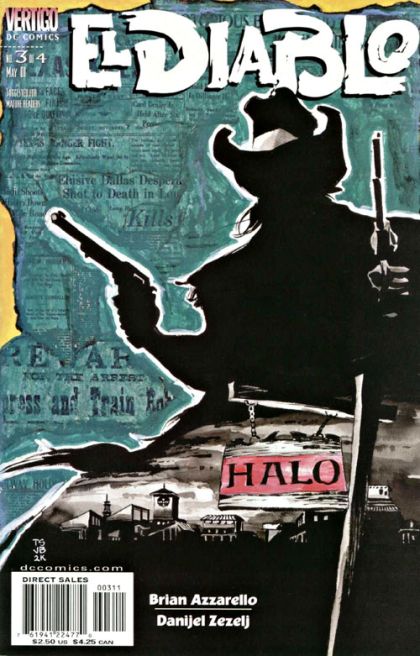 WRITTEN BY BRIAN AZZARELLO;ART BY DANIJEL ZEZELJ;PAINTED COVER BY TIM SALE VERTIGO's twist on a classic DC Western character continues. Riding into Halo, Sheriff Stone and his posse find themselves not only up against up El Diablo, but also the horrifying past the mysterious outlaw is bent on digging up. Closets may be hard to find on the Western frontier, but every man is still forced to carry skeletons ? skeletons that El Diablo knows far too well. MATURE READERS FC, 32 PG. (3 OF 4) Cover price $2.50.