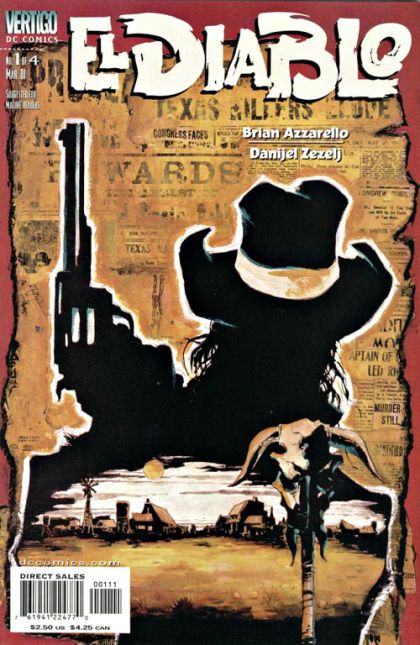 WRITTEN BY BRIAN AZZARELLO;ART BY DANIJEL ZEZELJ;PAINTED COVER BY TIM SALE Resurrecting the popular frontier phantom from the pages of WEIRD WESTERN TALES, the killer of legend known only as El Diablo is about to raise Hell in a small town. But who is he and what is his mission? MATURE READERS FC, 32 pg. (1 of 4) Cover price $2.50.