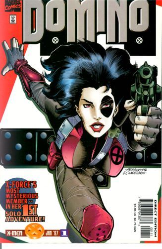 We know she's a longtime "partner" of Cable. We also know she currently co-leads the mutant strike force called X-Force. But what do we really know about Domino? Now all the pieces fall into place in this 3-issue limited series! Written by Ben Raab. Art and cover by David Perrin and Harry Candelario. Cover price $1.95.