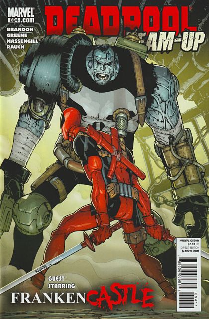 Written by IVAN BRANDON Penciled by SANFORD GREENE Cover by HUMERTO RAMOS IRON MAN BY DESIGN VARIANT by TBA A DAME TO GET KILLED FOR. When a widow hires Deadpool to avenge her husband and kill The Punisher, Wade Wilson follows a trail that leads him under the city of NY and headfirst into an army of monsters lead by the animated remains of his prey. What he finds is that FrankenCastle is already dead... but that doesn't make him any less deadly. 32 PGS./Parental Advisory ?$2.99