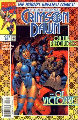 The shadowy Ultimate Undercloak wants to replace Psylocke, and if the mystical mite known as Gomurr can't help Archangel, she'll die! Written by Ben Raab. Art and cover by Salvador Larroca and Art Thibert. Cover price $2.50.