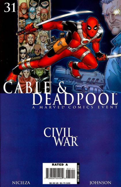 Deadpool, now a licensed agent of the government, busts up a meeting of Captain America's Resistance members, but when Cable shows up to help Captain America's team, they subdue Deadpool easily. But after a disastrous battle with Iron Man's forces in which Thor has killed one of their number, Cable takes Deadpool to confront the President.Will Cable's knowledge of the future be enough to persuade the President to stop taking the country down this road?