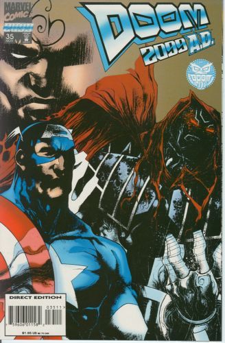 Written by Warren Ellis. Art by Steve Pugh and Scott Koblish. Cover by Ashley Wood. To Bring You My Love; Civil war or civil unrest unfolds after John Herod annexed USA with Captain America 2099 as his public front lackey; The vagrant electrokinetic mutant Static Annie attempts to flee Brother Eye, Punisher 2099 becomes branded a wanted war-criminal, X-Men 2099 revitalize themselves with a city-state of their own, and Doom 2099 reemerges from the national wreckage to break Brother Eye and arise another revolution against John Herod. 36 pages, full color. $1.95. Cover price $1.95.