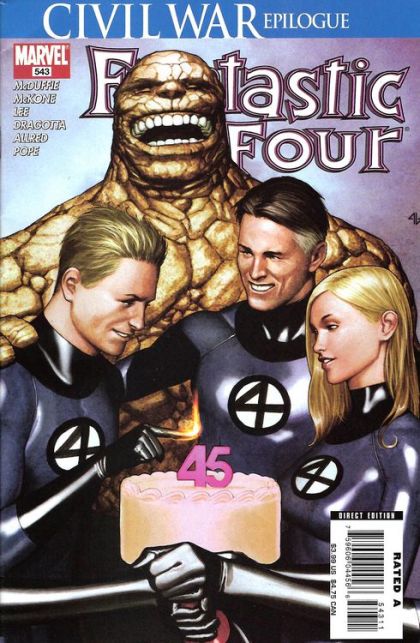 While Ben and Johnny watch the kids, and watch a retrospective on the carreers of the Fantastic Four, Reed and Sue attempt to work out their recent marital problems. The two decide that it's going to take more than one night to address the problems they had during the Civil War, and decide that they have to leave the team for awhile, allowing Black Panther and Storm to temporarily take their places.