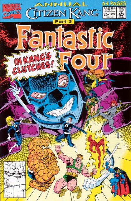 Citizen Kang: Part 3 of 4. Dr. Druid and Ravonna approach the Fantastic Four for help, since Dr. Druid knows that the Avengers would not trust him (in light of past events). Traveling to Chronopolis, they end up clashing with the investigating Avengers: Black Widow, Falcon, Sersi, Black Knight, Crystal and Hercules!