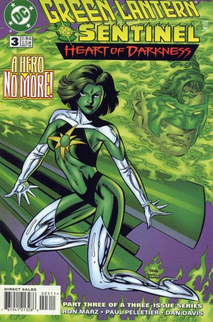 Obsidian fights Green Lantern! Jade becomes as evil as Starheart! Alan "Sentinel" Scott, clutching his heart, lies writhing in agony. Who will make the ultimate sacrifice? Written by Ron Marz. Art and cover by Paul Pelletier and Dan Davis. FC, 32 pg. Cover price $1.95.