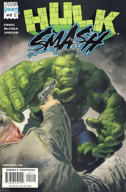 Direct Edition cover. Painted by kevin nowlan garth ennis/john mccrea Garth Ennis unliashes the Hulk! What hope do mere mortal men have against the most powerful creature to ever walk the planet? Learn the answer as Ennis and John McCrea (Jenny Sparks) look into the minds of the soldiers given the unlucky order of facing the green goliath! Cover price $2.99.