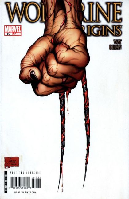 While Dugan and his forces take on Omega Red, Wolverine tries to save the life of the injured Jubilee. Dugan turns on Wolverine, however, and captures him as well. With Logan strapped into a SHIELD containment unit, his son cuts through Dugan to confront his father and promptly disembowels him.