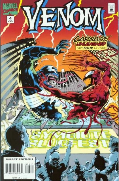 The symbiote showdown ends with Venom vs. Carnage in the middle of Times Square and cyberspace! The legion of symbiote fans will line up for this classic clash featuring a cardstock cover, glosy paper, and writer Larry Hama!