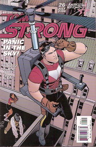 WRITTEN BY MARK SCHULTZ; ART BY PASCUAL FERRY; COVER BY CHRIS SPROUSE In stores April 14. Buckle up for a high-flying tale that takes Tom and his companions from the back streets of Millennium City to the top of the world! Aircraft across the world are mysteriously grounded as all engine- driven flight is rendered impossible. Now, after discovering a secret from his past, Tom Strong must solve this mystery ? or mankind will forever be banned from the skies! Featuring guest creative team Mark Schultz (Cadillacs and Dinosaurs) and Pascual Ferry (SUPERMAN). FC, 32 PG. $2.95 Cover price $2.95.
