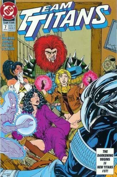 The Darkening Night: Part 1 of 4. "Heroes aren't Born, They're Unmade!" Guest-starring Phantasm and Donna Troy. Story by Marv Wolfman. Art by Phil Jimenez, Carlos Garzon, and Will Blyberg. The Nightwing from the Team Titan's future arrives in the present, but is he here as friend or foe? Cover price $1.75.