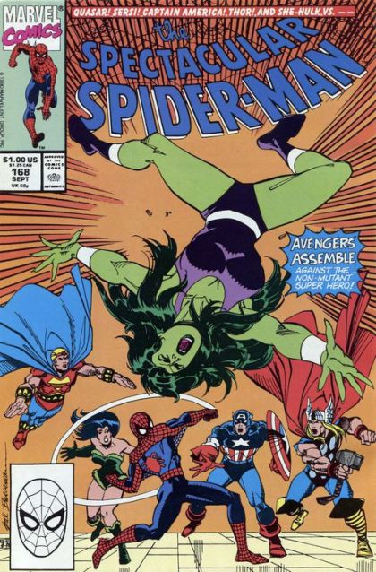 The Space Phantom, masquerading as She-Hulk, attacks Spider-Man and traps him in a hole; Spidey then goes to Avengers Mansion to pick a fight; Captain America quickly proves that it could not have been She-Hulk; Jason Jerome is making harassing phone calls asking Mary Jane out.