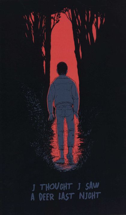 A one-shot horror comic about a man who nearly runs over a creature in the middle of the night, and ends up following it deep into the woods.